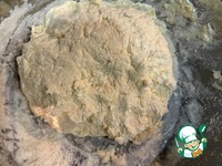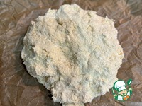 Противень застелить пергаментом и выложить творожный колобок. Тесто будет очень липнуть к рукам, поэтому работаем с тестом руками, смоченными в воде |