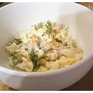Полить майонезом. Тщательно перемешать. Посыпать укропом (по желанию). Можно подавать. Приятного аппетита. |