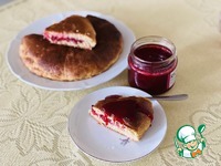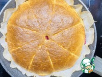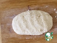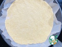 Одну часть раскатать в круг на пекарской бумаге, толщиной 1-1,5 см. так удобно перенести на сковороду d 24 см. |