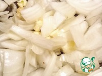На оливковом масле на среднем огне жарить лук и чеснок 4 минуты. |