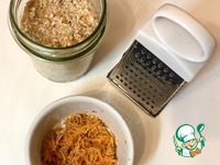 Утром натереть отложенную морковь на средней тёрке, смешать с отложенным миндалём. Я ещё капнула льняное масло, что не обязательно. |