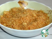 Соединить масло комнатной температуры с сахаром, измельчённым миндалем и мукой так, чтобы получилась крошка. Может быть придётся корректировать количество муки. |