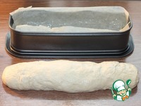 10. Форму для выпечки застилаем пергаментом и смазываем растительным маслом. Формируем из теста батон. |