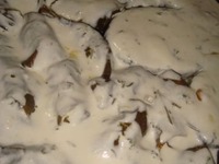 Соус: на сковороду выливаем сливки, доводим почти до кипения и всыпаем пармезан, перемешиваем непрерывно, пока масса слегка не загустеет, добавляем тмин и розмарин. |