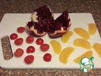 Черри помыть, разрезать пополам, удалить плодоножку. Апельсин очистить, разделить на дольки, убрать белую пленку |