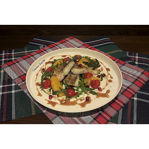 На блюдо выложить рукколу, рыбку + дольки апельсина + черри. Посыпать солью, зернами граната, кедровыми орешками. Полить гранатовым соусом Волшебно вкусно! |