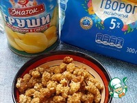 Порезать грушу и выложить поверх творога. |