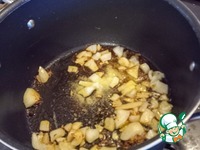 В глубокой ёмкости разогреть растительное масло. Добавить горчицу, семена зиры и карри. Жарить 30 секунд. Затем выложить лук и соль. Готовить 5 минут до размягчения лука. |