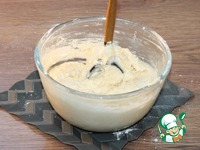 6. Затем 1/2 часть сметаны, перемешиваем. Далее 1/3 часть мучной смеси, перемешиваем. Затем сметана 1/2 часть, перемешиваем. |
