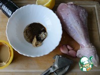 Для маринада смешиваем растительное масло, соевый соус, сок лимона, горчицу, выдавливаем чеснок, добавляем кориандр. |