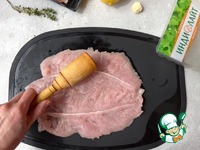Разрежьте грудку индейки и отбейте до толщины около 1,5 см. |