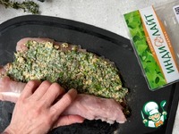 В миске смешайте размягчённое сливочное масло, рубленую петрушку, чеснок, измельчённые орехи, орегано, тимьян, сок и цедру одного лимона. Посолите и поперчите по вкусу. |