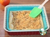 15. Укладываем первый пласт теста в форму и формируем бортики. Раскладываем яблочную начинку и разравниваем. |