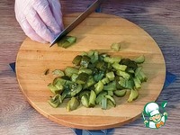 4. Подготовим начинку. Маринованные огурцы (2 шт) мелко нарезаем. |