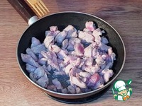 9. Кусочки индейки обжариваем на сильном огне до "бела", чтобы в нем быстро "запечатались соки". Жарим до полуготовности. Мясной сок, если его много, можно слить в картофель. |