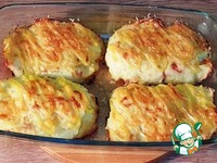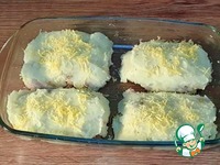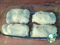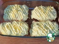 15. И закрываем все картофельным пюре. Желательно и по краю порции, как бы запечатываем рассольники. В результате, вот такую готовую порцию, удобно будет переложить лопаткой на блюдо. |