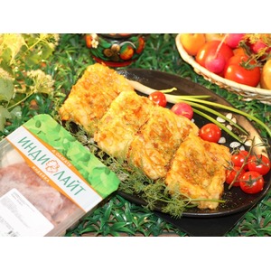 3. Филе индейки (320 г), нарезаем на порционные кусочки. Добавляем растительное масло (1 ст. л.) и специи. ставим миску в сторону. |