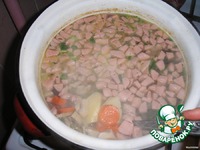 И почти в самом конце бросаем сосиски, крупно нарезанные. Добавляем зелень и немного сливочного масла. |