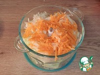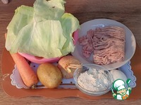 6. В чашу блендера выкладываем подготовленные овощи: чеснок, листья капусты, морковь, лук и картофель. |