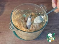 8. Вбиваем в чашу 1 крупное куриное яйцо и всыпаем специи. |