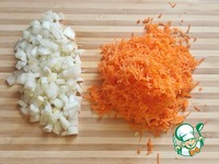 Лук и морковь почистить, помыть. Лук нарезать кубиками, морковь натереть на мелкой терке. Обжарить на растительном масле 5-7 мин. |