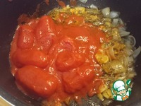 Влить томаты в собственном соку Довести до кипения. Уменьшить огонь и тушить 6 минут до загустения соуса. |