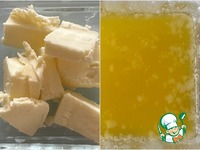 Масло для теста надо растопить. Но! Растопив, я его охладил до температуры тела. Чтобы муку не заварить, значит. Это условие, которое: как утверждает автор рецепта, обязательно к выполнению. |