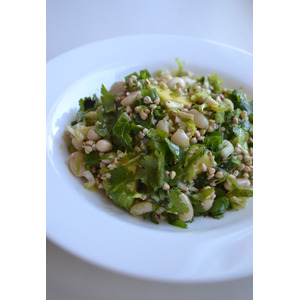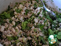 Смешать фасоль, гречку, авокадо и зелень. |