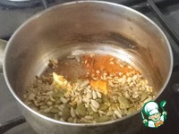 Выложить семена в остром соусе на яичную смесь. |