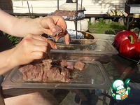 Тем временем тандыр уже разогревается, мясо нанизывается. |