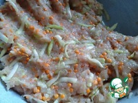 Мясо и лук прокрутить на мясорубке, добавить натёртый на крупной тёрке кабачок, промытую чечевицу, соль и специи. Фарш хорошо вымешать. |