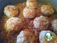 На овощи выложить тефтели, залить водой, чтобы тефтели покрылись наполовину. Накрыть крышкой и тушить при небольшом кипении 40 минут. В процессе перевернуть пару раз. |