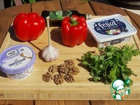 Подготовить продукты для приготовления. Перец, зелень и орехи помыть. Обсушить. Орехи, зелень, чеснок измельчить. |