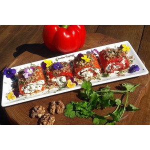 Описание: Яркая закуска с запеченным перцем и рассольным сыром — идеальное сочетание сладкого перца, соленого сыра и орешков.