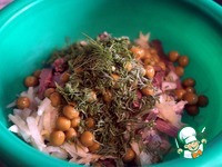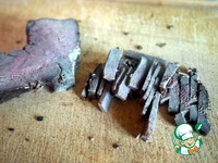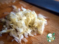Овощи – это белокочанная капуста и стеблевой сельдерей. Мариновал я их вместе, маринад обычный: соль, сахар, перец черный и душистый горошком, уксус. А вот сердце отваривал особым образом: достаточный кусок солил, натирал специями (кориандр целый, несколько горошков черного и душистого перца, зира – все это размалывается в ступке), заворачивал слоев в десять пищевой пленки и на самом малом огне варил 5 часов. Сердце при таком способе получается консистенции почти отварного языка. Время варки сердца в общее время приготовления салата я включать не стал, это - отдельная процедура.