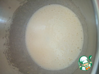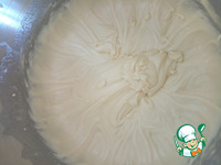 Взбиваем до получения плотной пены. Добавляем в тесто 60 мл молока и опять взбиваем. |