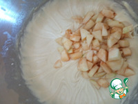 Добавляем в тесто нарезанные яблоки и перемешиваем. |