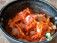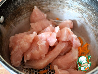 В кастрюлю с толстыми стенками выложить азу из индейки. |