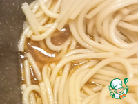 Приготовить спагетти в соответствии с инструкциями. Процедить. Маринад от томатов и томатные соки добавить к спагетти. Готовить до полного поглощения спагетти образовавшимся томатным соусом. |