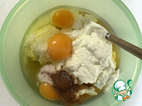 Смешать творог, яйца с солью, ванильным сахаром и корицей до однородности. |