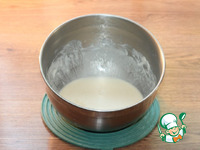 4. Приготовим тесто. В пенную опару вливаем соленый раствор и растительное масло (2-3 ст. л.). |