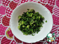 Зелёный лук промыть проточной водой, обсушить бумажным полотенцем и нарезать колечками. |