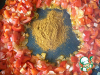 Добавить нарезанные мелкими кубиками помидоры, потушить минут пять, посолить и поперчить, добавить овощной бульон и тушить 10-15 минут. |