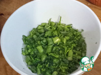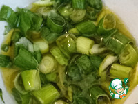 В небольшой ёмкости смешать сок и цедру лайма, 1 столовую ложку оливкового масл а, соль и зелёный лук. Взбить. Это будет заправка. |