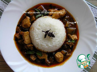 Тушите до мягкости. В конце приготовления добавьте сахар, рыбный соус и мелко нарезанные листики базилика. |