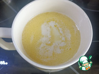Молоко вместе с маслом прогрейте в микроволновке, чтобы масло растопилось и остудите до комнатной температуры. |