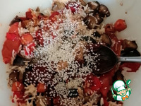 Описание: Бибимбап - блюдо корейской кухни, представляющее собой салат из риса, баклажана и других запечённых овощей с добавлением почти сырого яйца в остром сладковатым соусе на основе кочудяна (корейской перечной пасты). Прелесть этого блюда состоит в том, что вы можете использовать любые овощи, которые у вас залежались в холодильнике. Налицо также вся палитра вкусов умами. Бибимбап послужит сытным вкусным обедом для всей вашей семьи. Призываю попробовать.
