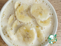 Форму для духовки смазать сливочным маслом, непроизвольно выложить нарезанный банан, заливку вылить на банан |