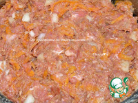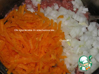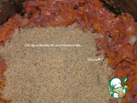 Добавьте мелко нарезанный лук и тертую тыкву, перемешайте. |