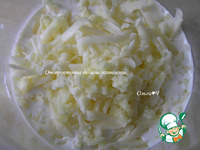 Для соуса смешайте сливки с тёртым сыром и измельченным чесноком. |